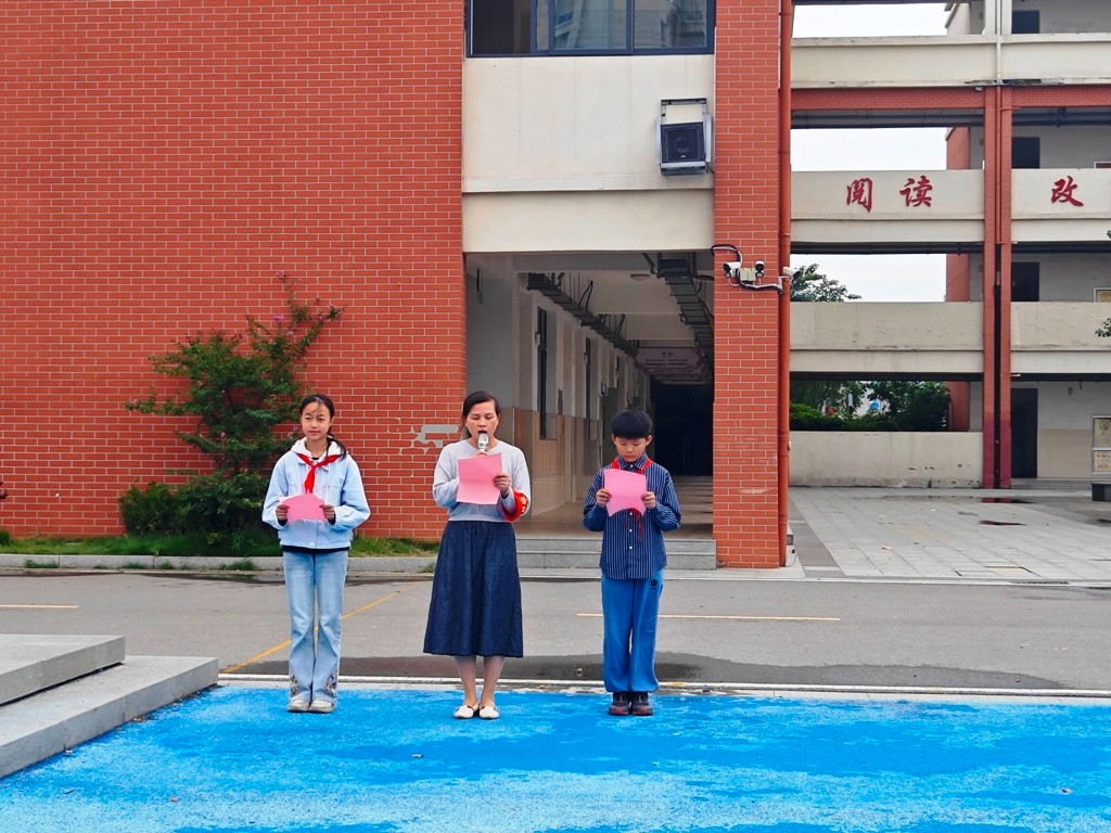 “从我做起,珍爱和平!请党放心,强国有我!”——随后,全校学生庄严呼喊。铿锵有力的誓言如潮水般涌动,传递出新时代少年不忘历史、勇于担当的坚定决心。